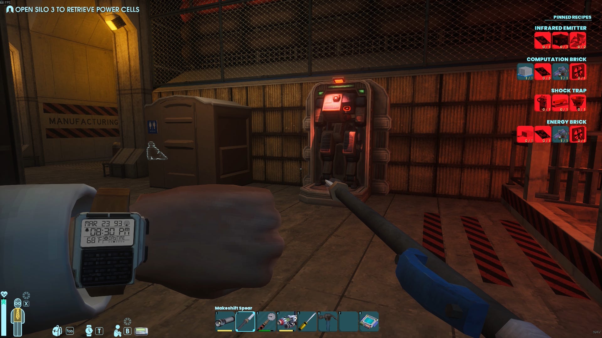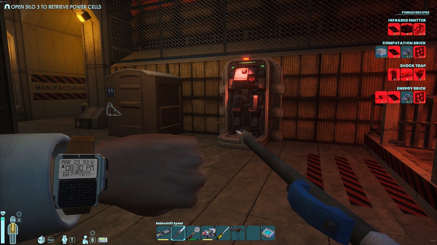 The survival elements are similarly somewhat superficial. There are meters for hunger, thirst, fatigue, uh… intestinal urgency… and each of these needs to be kept filled, lest you get assaulted with a giant ticking doomsday clock telling you of your imminent death from starvation or dehydration. Or you shit yourself. Shitting yourself, or becoming filthy in other ways [like chopping up corpses for resources] can eventually lead to you gaining a sickness debuff, but for the most part it’s just included for the fun of it. It is recognized that the developers of Abiotic Factor have a funny sense of ‘fun.’