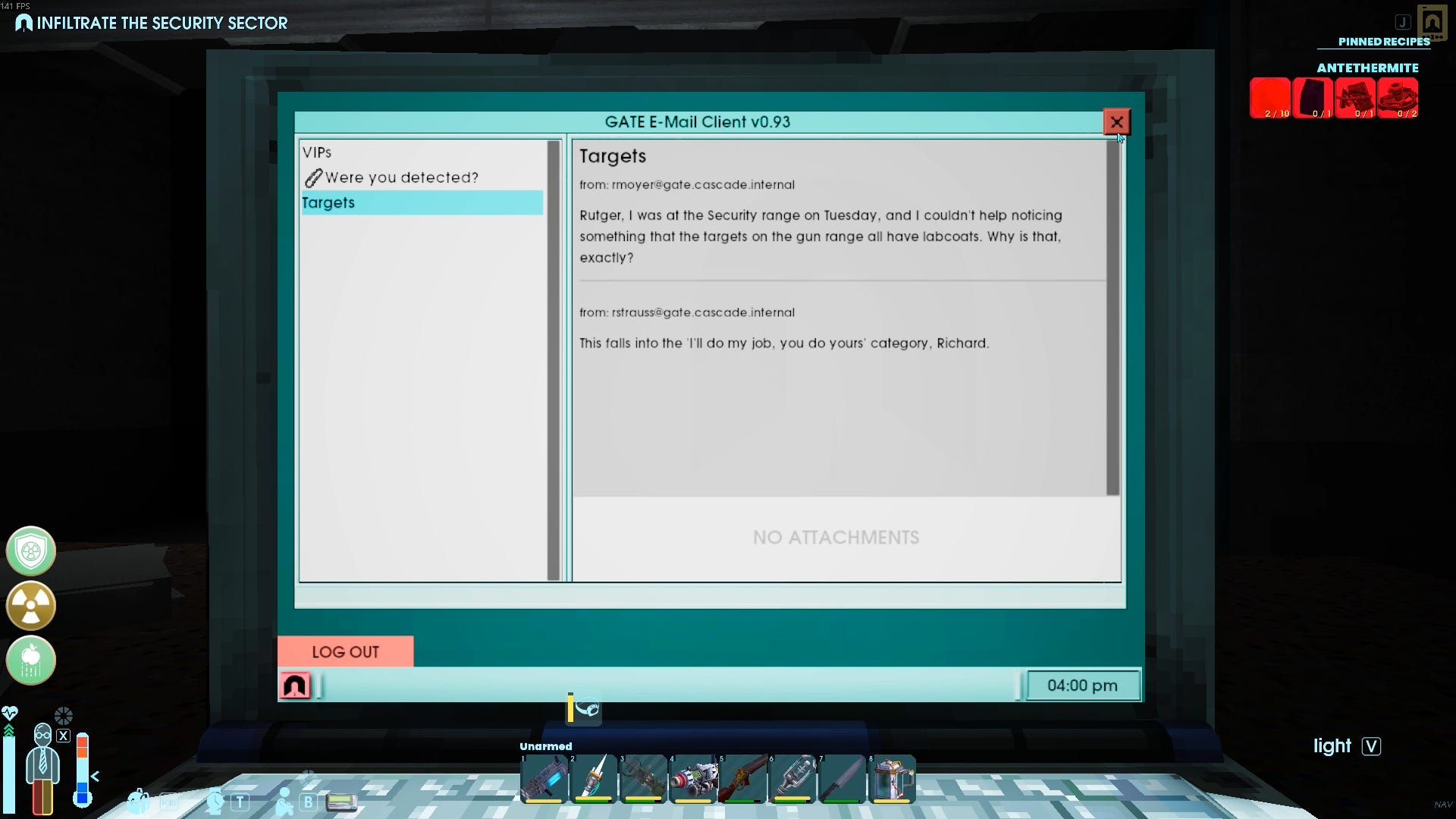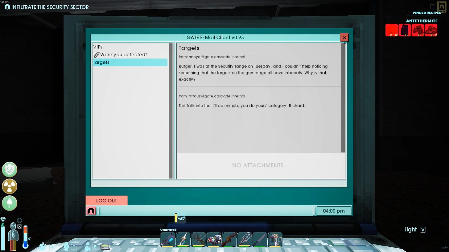 Another surprising positive, at least surprising to me, was the story and general tone of the game. The early game is a bit hammy, and the clashing of Half-Life references with bizarre choices like the fact that you have to play a minigame to relax your sphincter every time you use a toilet doesn’t necessarily set a good first impression. But as your quest becomes more complicated, and the areas more treacherous, it gradually fleshes out a far more compelling world and backstory than you’d probably expect from the superficial zaniness. The game takes even more clear inspiration from the “SCP Foundation” meme-mythos-format than it does in the end with Half-Life 1, and while I don’t particularly care for the SCP style, I found it to be far and away the best iteration of the template I’ve ever seen.